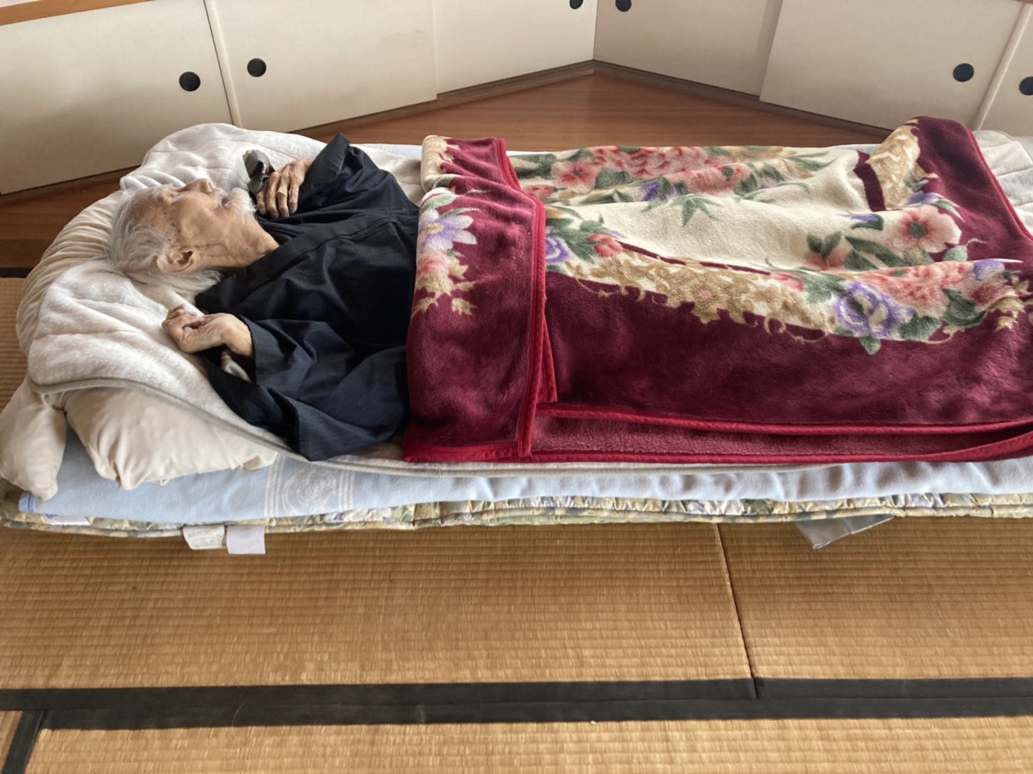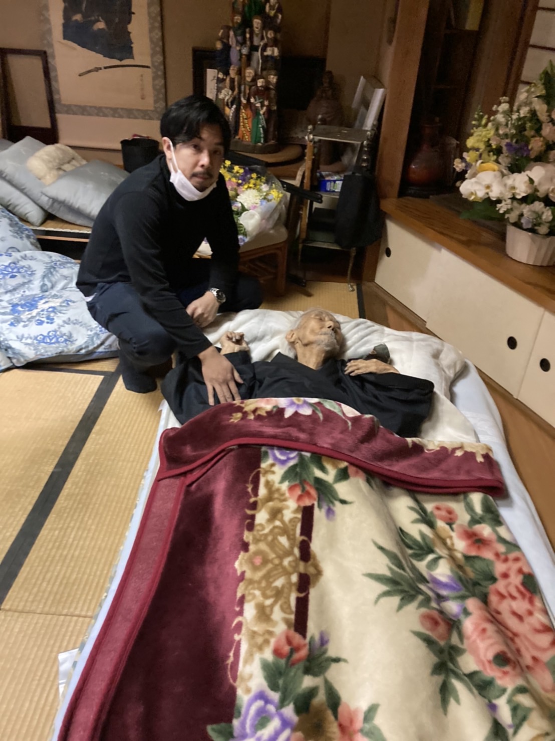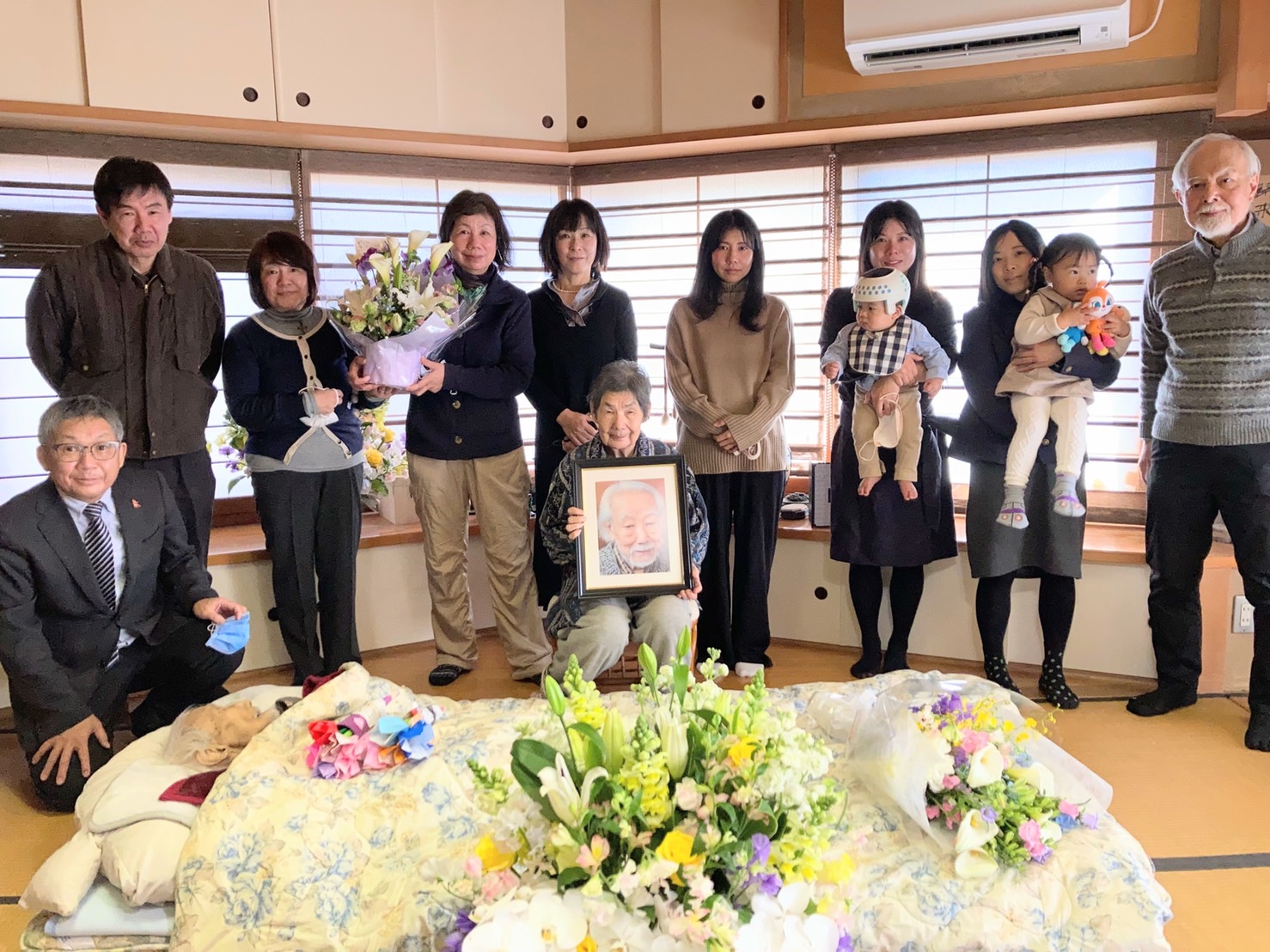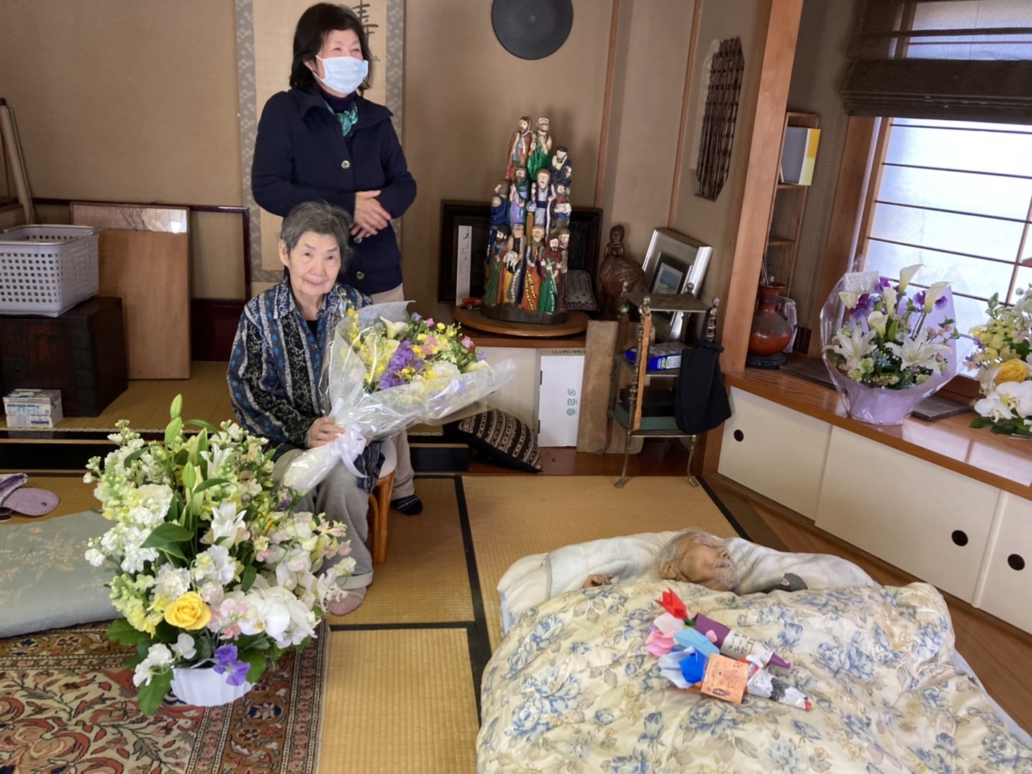 正人さんの思い出 正人さんと尚子さん 2月22日の未明に正人さんは天に召されました。朝、尚子さんが見に行かれた時には両手を挙げて、息を引き取られておられたそうです。前の日にお会いした時にも、両手を挙げてくつろいだ様子で休んでおられました。たぶん両手を挙げてイエス様万歳と言われていたのではないかと思います。 23日に家族で集まり、家族葬が行われました。コロナの状況もありますので少人数の家族のみのお葬式でした。とても暖かいくつろいだ雰囲気での、今まで経験したことのない、正人さんにふさわしいお葬式でした。 お葬式の様子です。白鷺の大きな和室でおこなわれました。庭ではきれいな紅白の梅の木が満開でした。